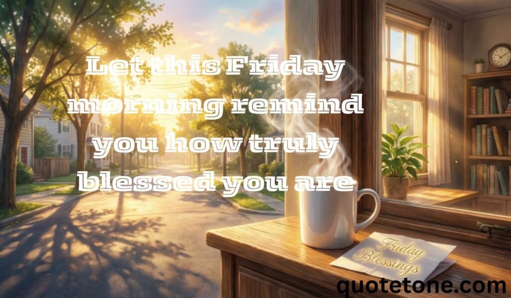 Thankfulness transforms perspective and enriches every experience. Friday mornings offer perfect opportunities for expressing gratitude and thankfulness deeply. Count your blessings today.